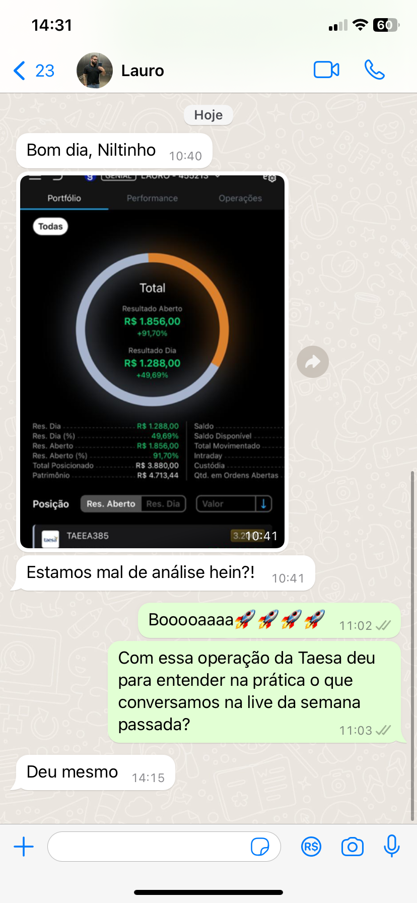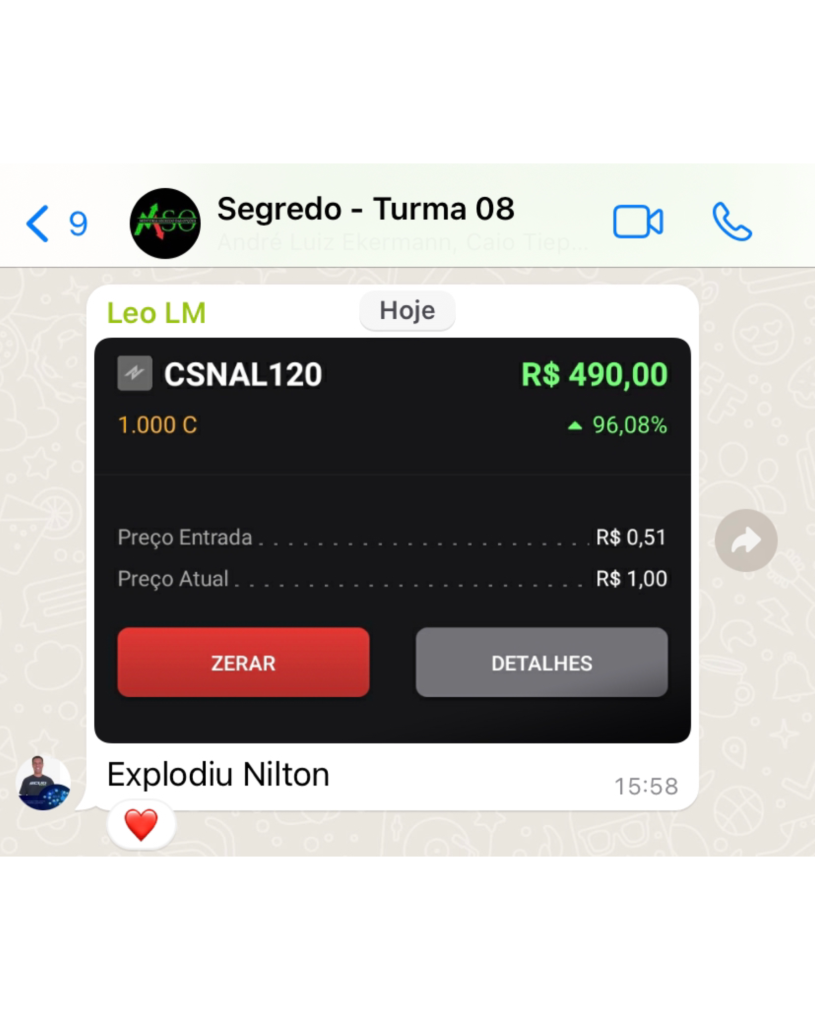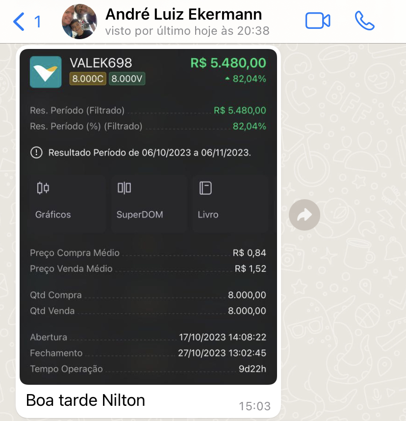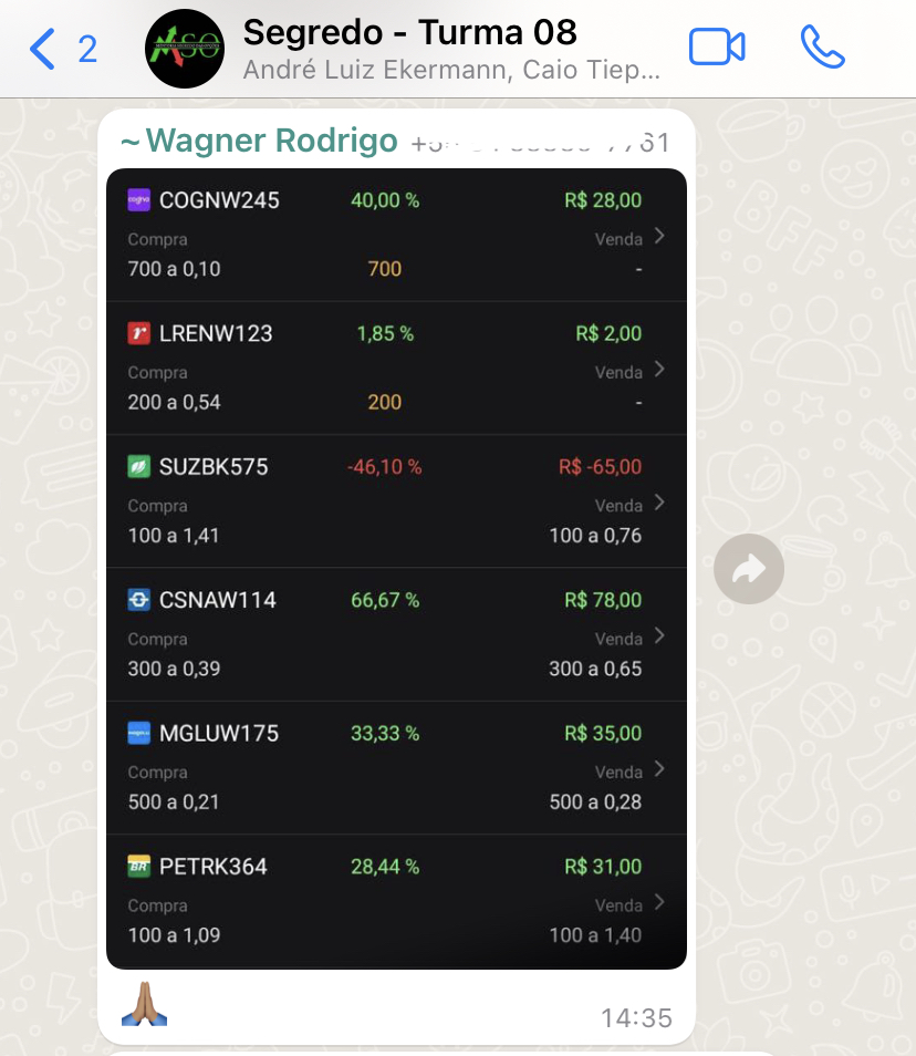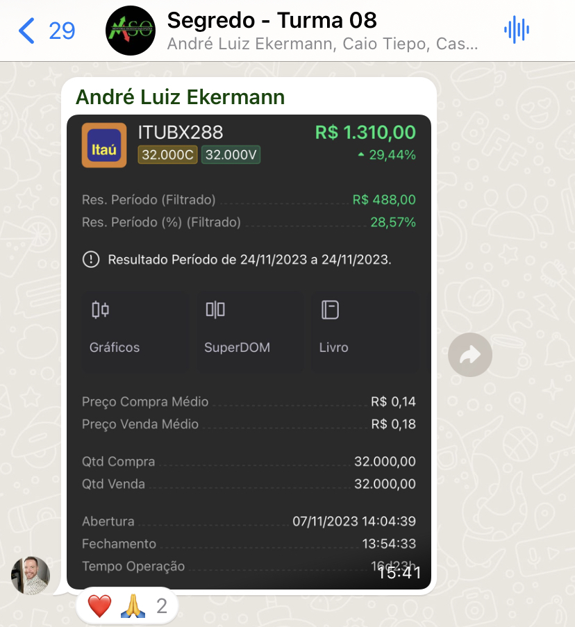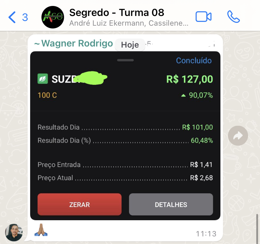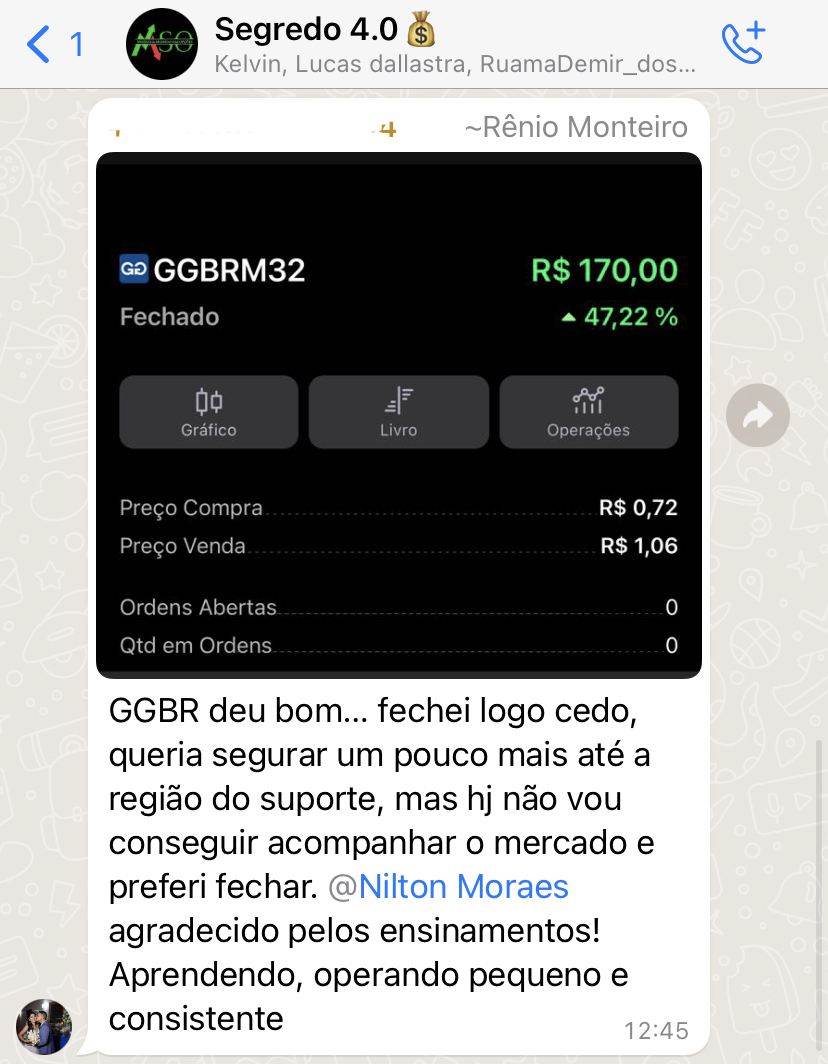 O suporte no whatsapp é feito por meio de um grupo, onde você manda sua dúvida e eu mesmo responderei o mais breve possível.