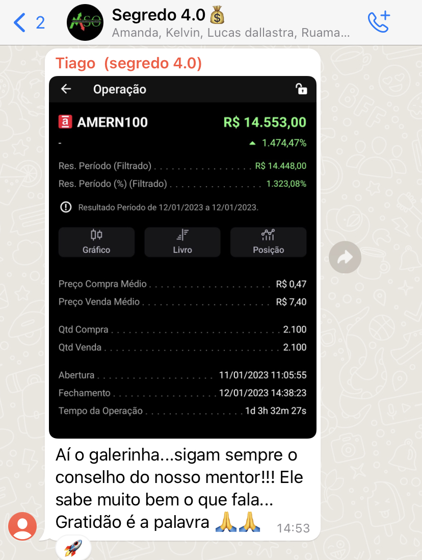 As lives são agendadas e informadas previamente no grupo para que você possa se organizar, com duração aproximada de 1 horas. As mentorias incluem conteúdos práticos, tira-dúvidas, análises e muito mais, caso você não participe ao vivo poderá assistir gravada.